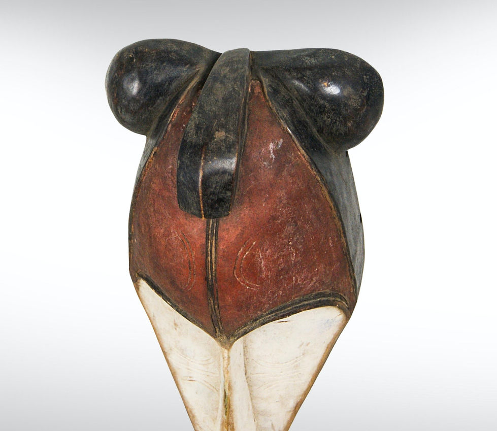 Traditionally, the Ngil Ngontang mask would have been worn during initiation ceremony of new members, funeral of a supreme chief, or whilst administering tribal justice and other such special occasions.
