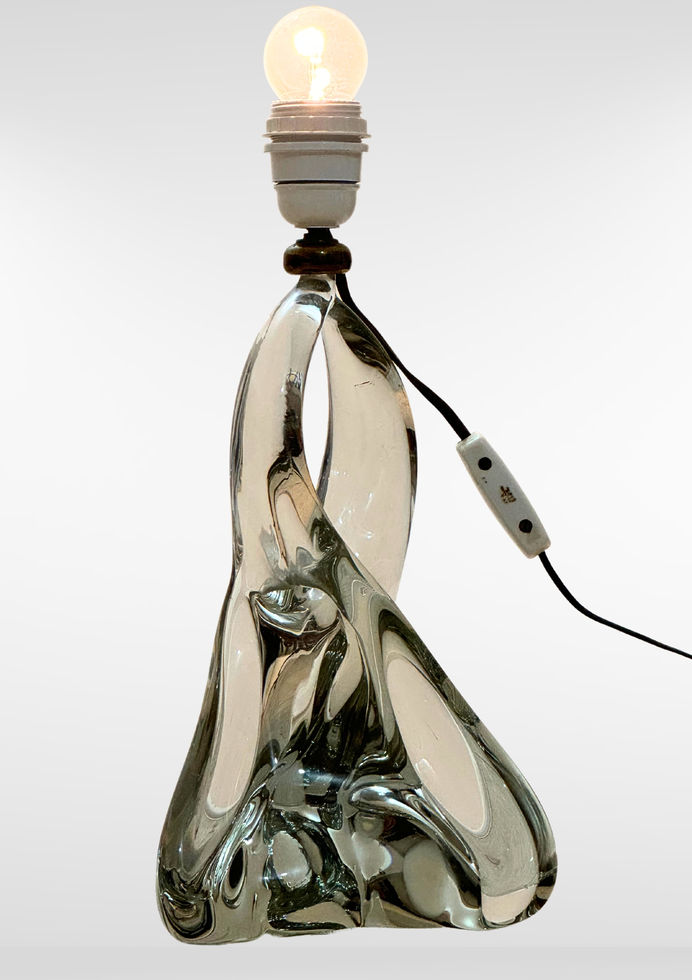 Mid-Century Val Saint Lambert Sculptural Crystal Glass Lamp Base
