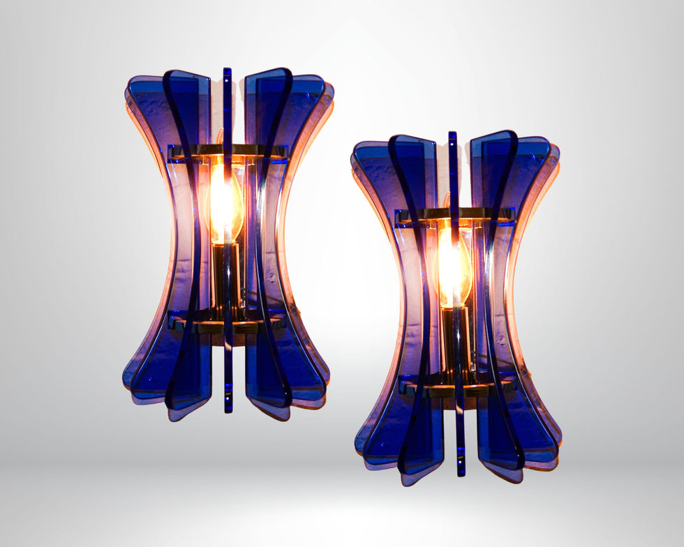 Pair of Murano Glass Wall Sconces in Colour Deep Blue Veca Italy 1960s