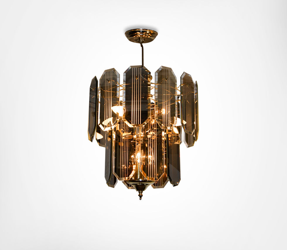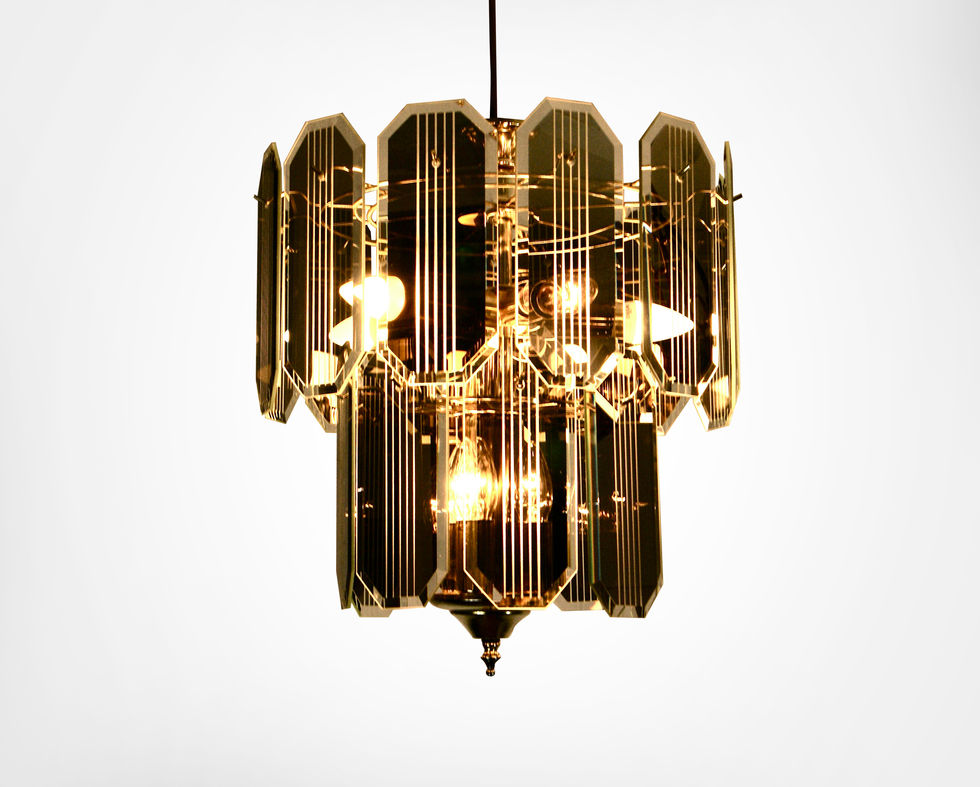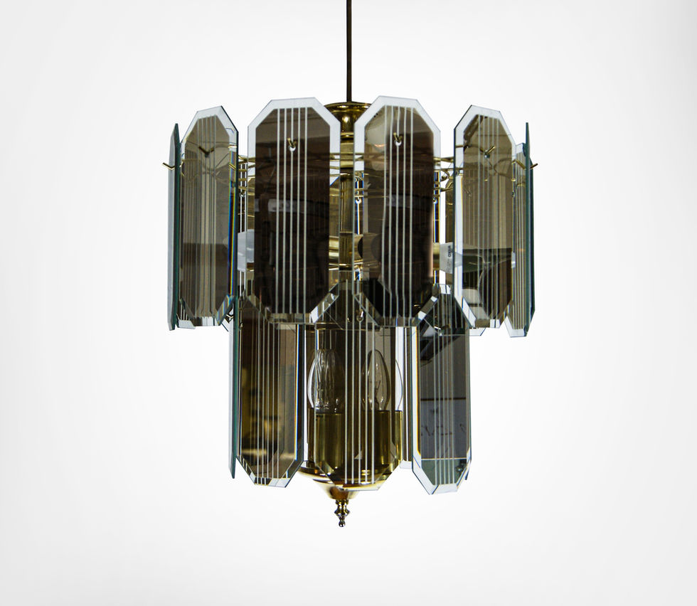 Vintage 1970s Mirrored Glass Chandelier Ceiling Lamp